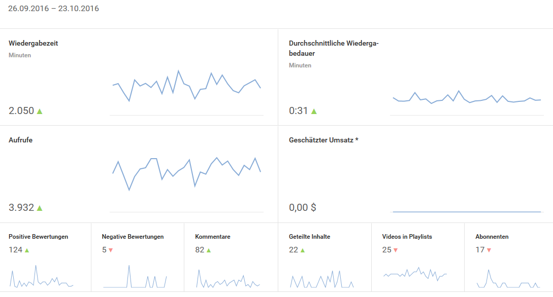 Bei den Aufrufen ist allgemein zu beachten das ich einiges an Evergreen Content aufn Channel hab. Templates und so