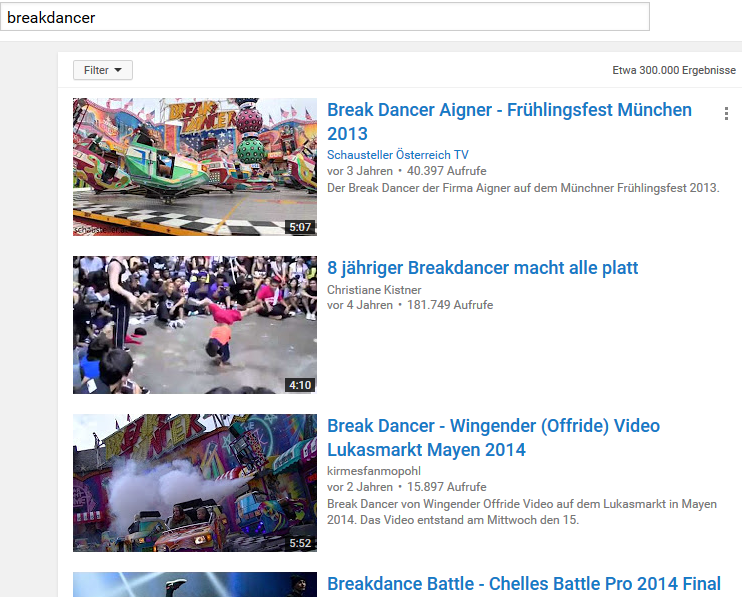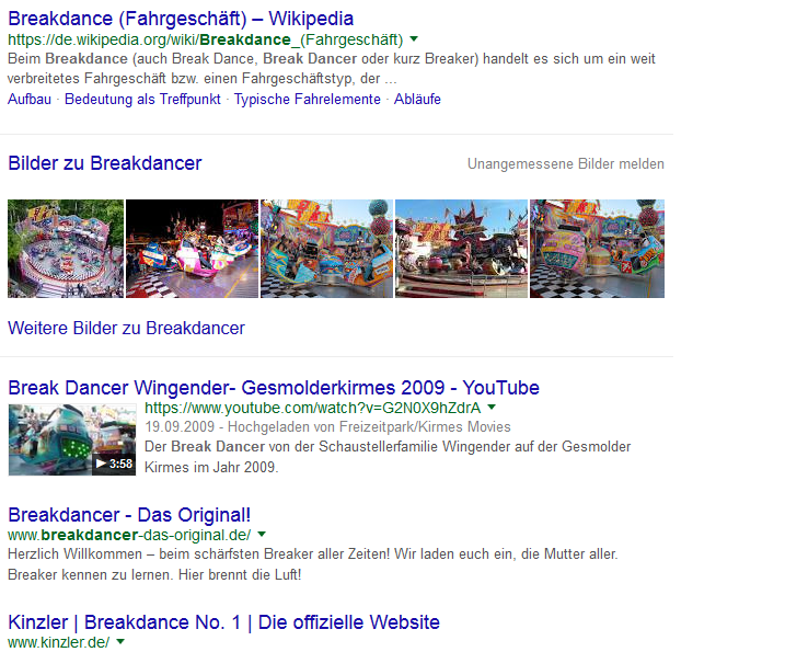 Als Beispiel ... der Klassiker: Der User gibt bei Google "Breakdancer" ein ...
