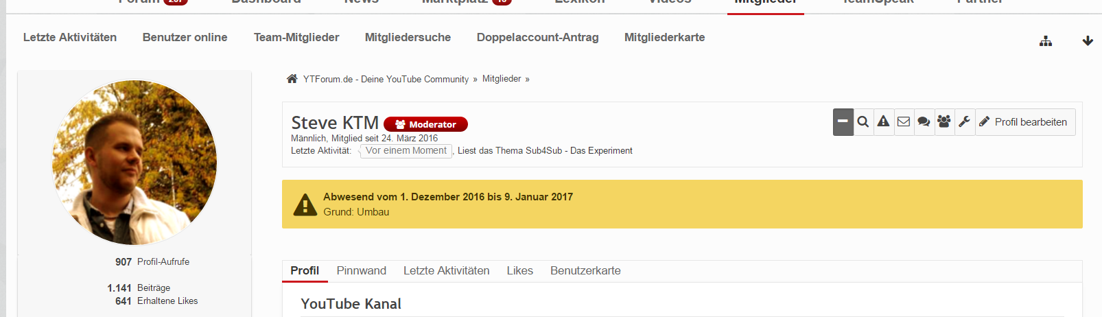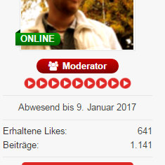 Angezeigt wird die Abwesenheit im Profil und in der Seitenleiste bei Beiträgen unter dem Benutzerrang: