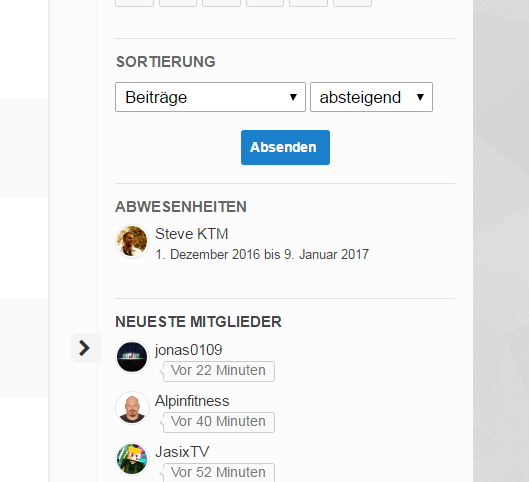Außerdem werden User mit aktivierter Abwesenheit in der Seitenleiste der Mitgliederliste angezeigt: