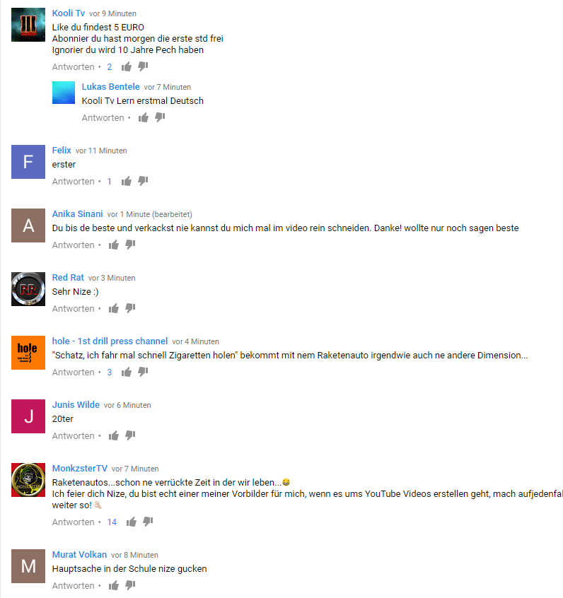Es geht um Videos bei denen die beliebtesten Kommentare oben stehen: