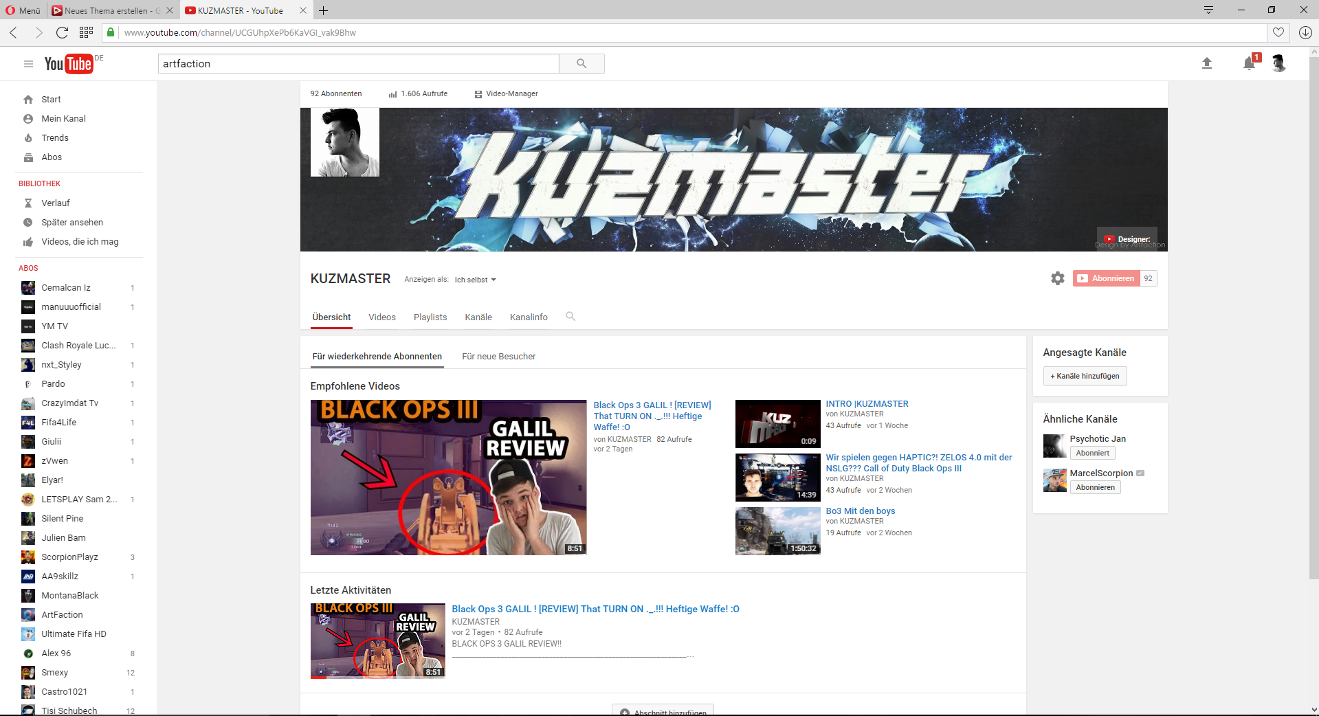 Ihr findet mein Kanalbanner cool? Ihr möchtet auch eins erstellt bekommen? Dann schaut bei meinem Youtubekollegen und Freund Maik [ARTFACTION] vorbei: https://www.youtube.com/user/ArtFactionHD