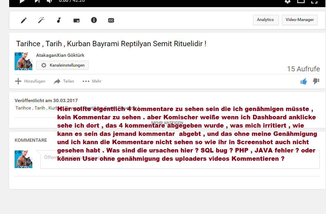 Hat YT einen Fehler in SQL ? oder können user ohne meine Genehmigung Kommentar abgeben ? aber die Kommentare sehe ich nicht , die sind für mich Unsichtbar ?