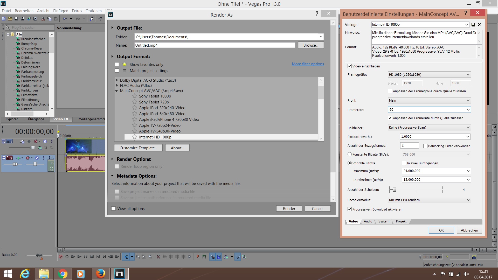 Dieses Video hab ich mit Sony Vegas 13 pro gemacht, gerendert auf " Internet 1080p 60 fps" hat einer eine idee an was das liegen kann?