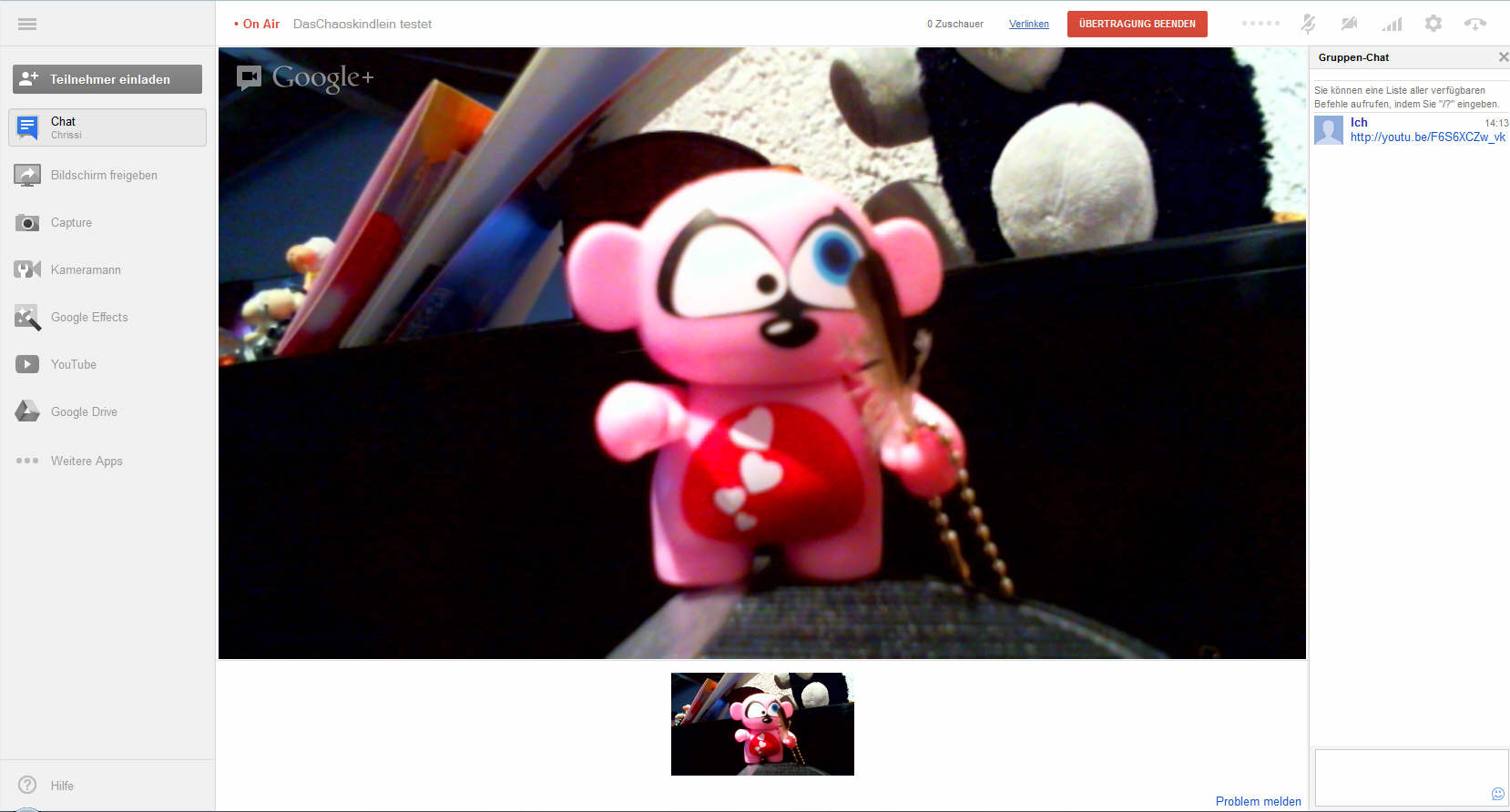 Ich habe eine Frage zum Livehangout, den YouTube anbietet.
