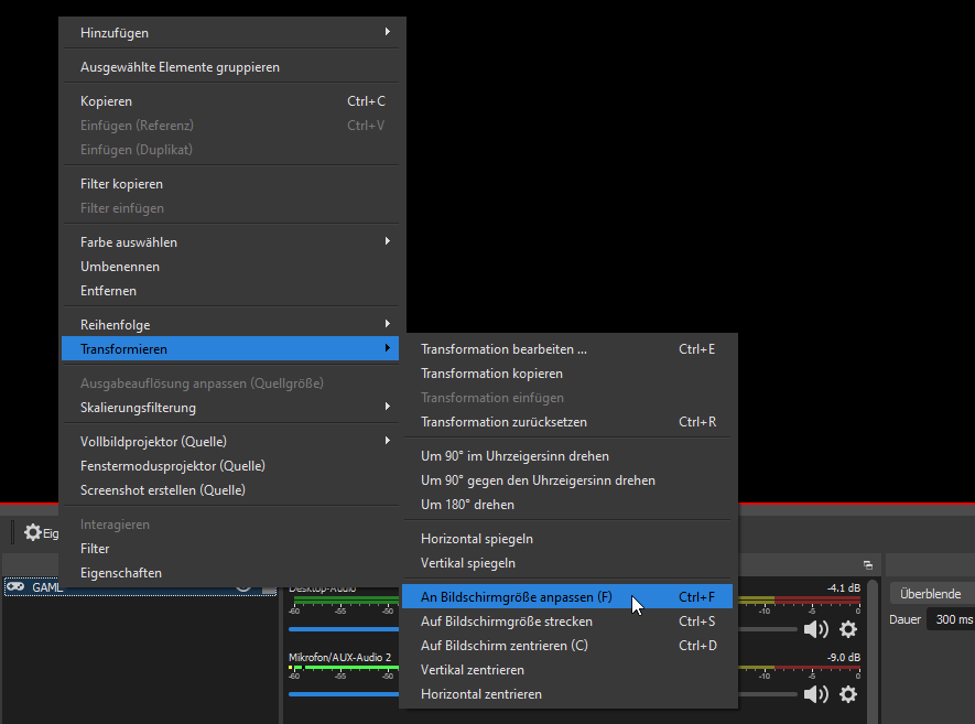 Wie kann ich das Bild dort wieder hin machen? In Obs habe ich es richtig vergrößert und co.