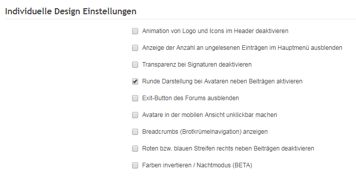 Optionen für Anpassungen am Design