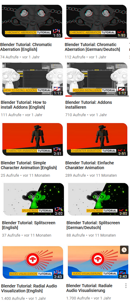 Hab letztes Jahr selbst mal nen Monat doppelt gemoppelt gemacht, 4 Tutorials in 2 Versionen (Deutsch/ Englisch) hochgeladen und habe da schnell gemerkt, der Aufwand lohnt nicht. Entweder führt man nen Channel auf der Muttersprache oder macht ihn dann für möglichst viele zugänglich mit english ... aber nen gemisch schrekct da meist eher ab.