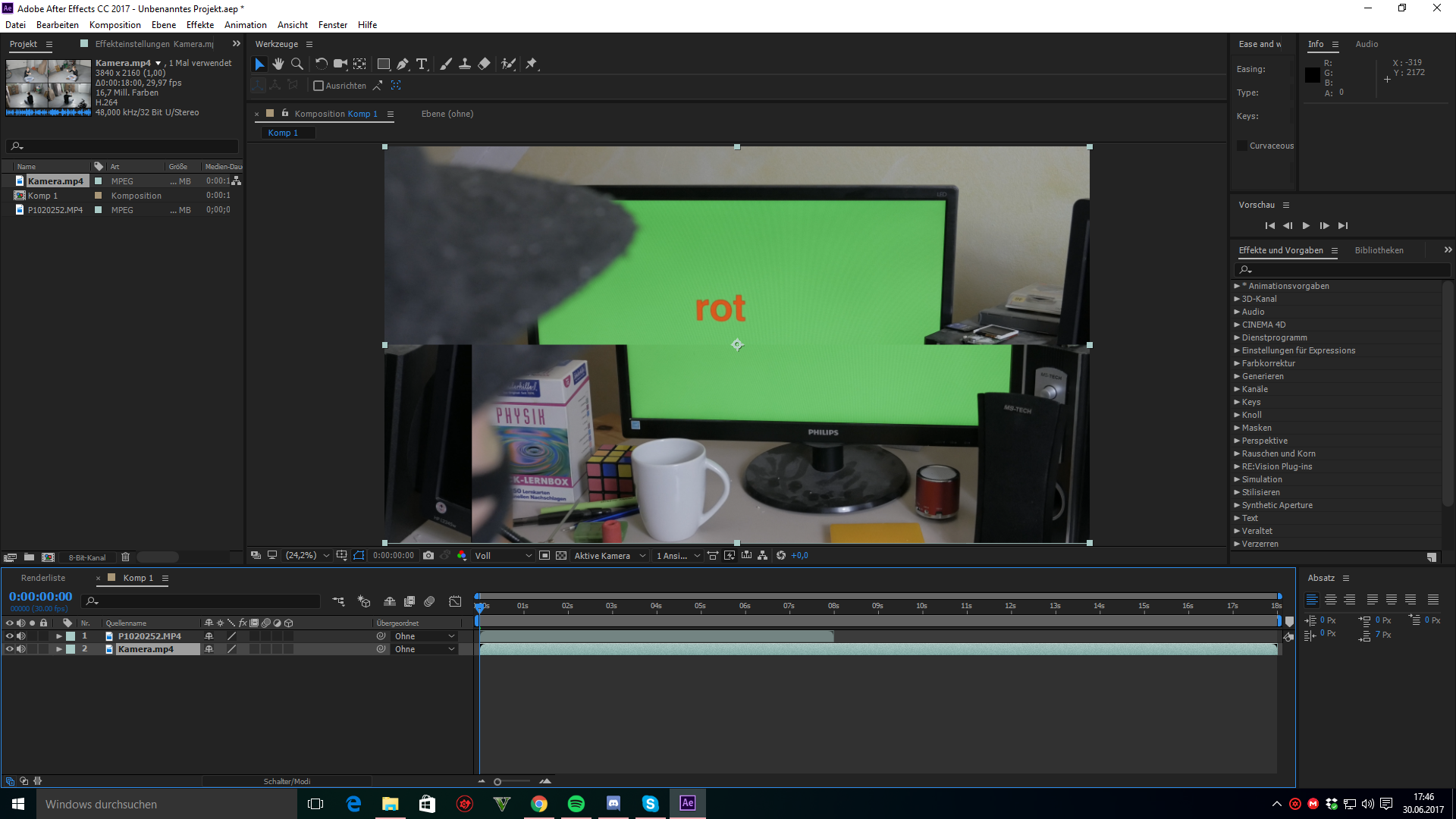 Hey das Problem hat sich dadurch geklärt (deswegen hab ich es als erledigt markiert) das ich die Auflösung auf 1/2 gestellt habe. Also nicht mehr volle Auflösung. Dann ging auch das rendern. After Effekts (oder mein PC XD) hatte wohl Probleme damit das die Auflösung 4k war oder so. jedenfalls wenn ich die vorschau Auflösung auf 1/2 oder 1/4 gestellt habe, wurde das Bild Korrekt angezeigt.