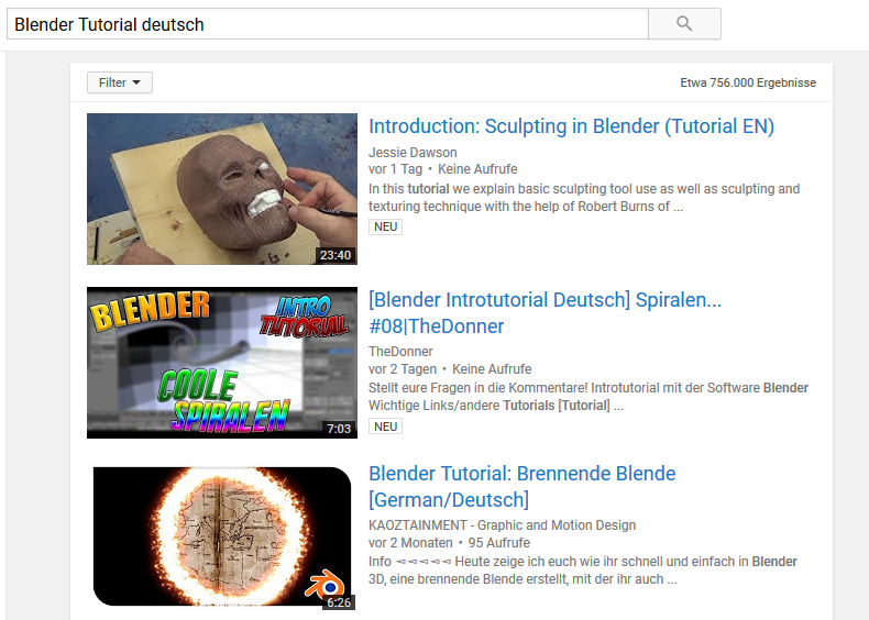 Das da zwischen also zwischen 1,2 Tage und 2 Monate noch mehr Videos kamen mit den Tag "Blender Tutorial deutsch" weis ich weil da schon mindestens 4 von meinen Videos kamen.Grundlegend scheint dies wie gesagt eine Endverbraucheroptimierung zu sein um ihnen irrelevante Suchergebnisse zu ersparen. (Ich sage nicht das es funktioniert