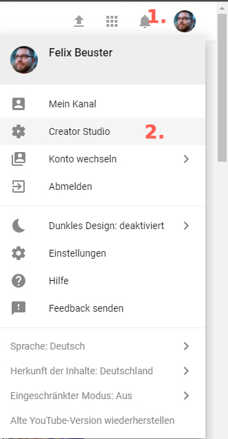Wo ist der Videomanager auf der neuen Youtube Seite ? (Design)