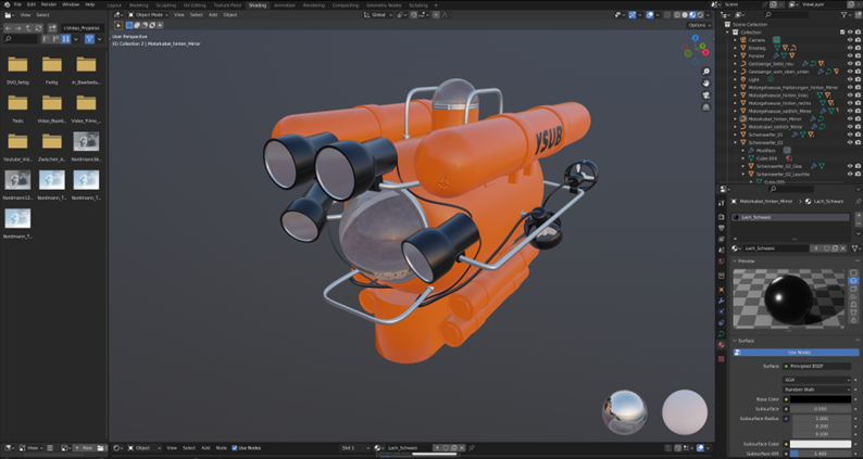 Mittlerweile bin ich beim Texturing angelangt (ca. 40% des Buches), und hier habe ich das Tauchboot, dessen Modelling-Werdegang im Video weiter oben demonstriert wird, entsprechend behandelt, und auch das ist nicht mal eben Farben und Schriften auf Oberflächen auftragen.