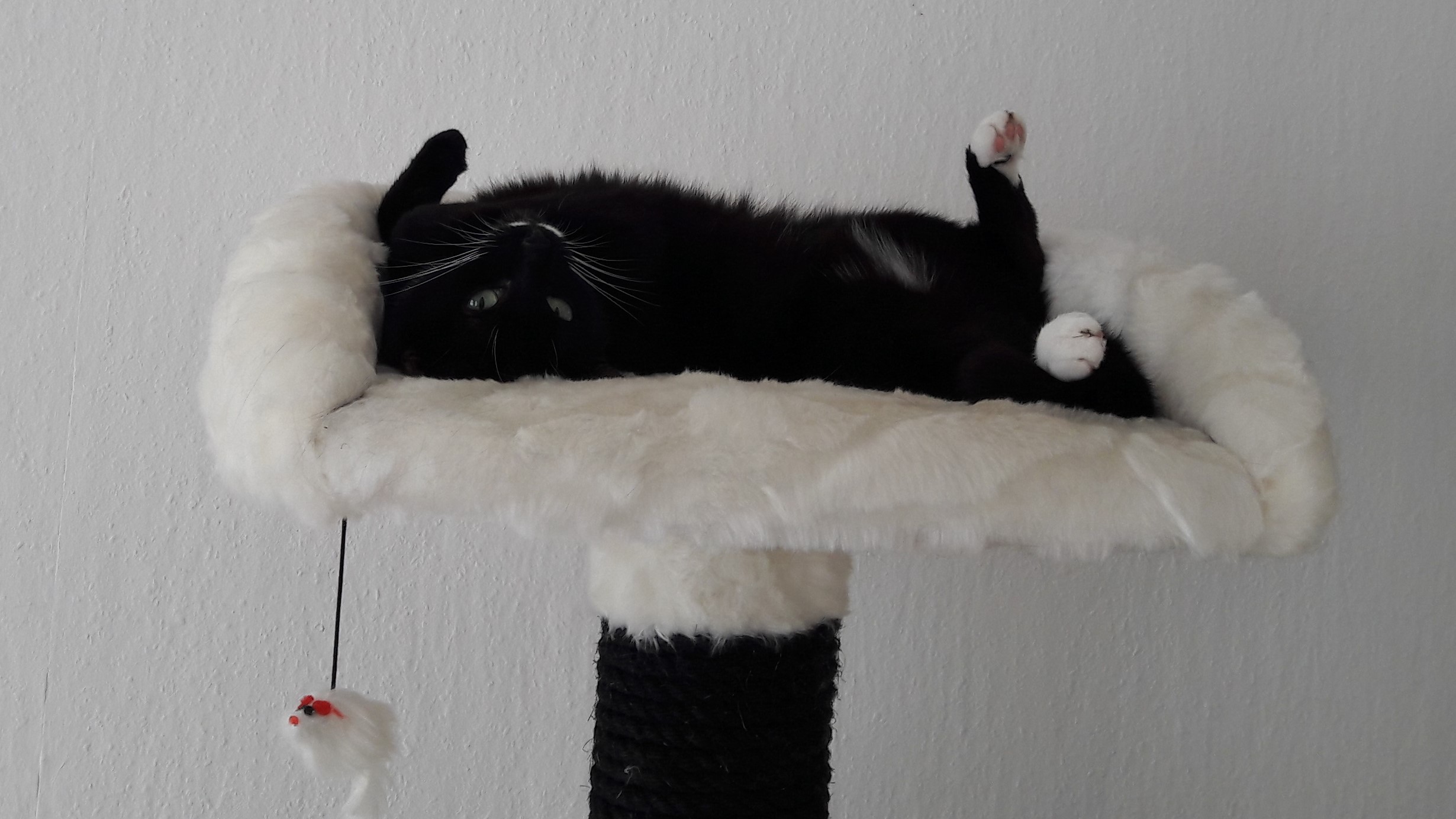 Also wenn ich das Bett frisch beziehe, rekelt er sich darauf wie nen Königstiger.