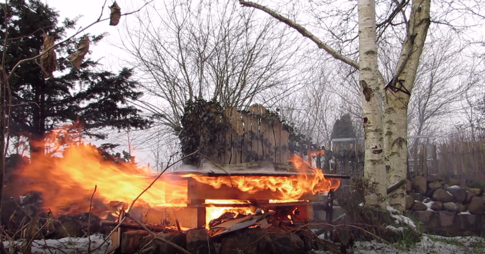 Wir holten Pappe, Paletten, Spiritus, Burgerverpackungen und eine Menge Verrücktheit und haben eine Anlage gebaut, die innerlich zu vielen Emotionen führte: