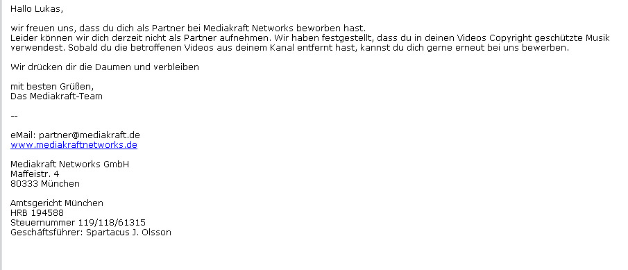 & zwar habe ich mich am 24 bei Mediakraft beworben & heute habe ich die Antwort bekommenSiehe Anlage!