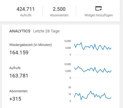 Bin nach wie vor davon überzeugt, dass es für meinen Kanal eine Sättigungsgrenze bei etwa 3500 Abbos gibt, aber mein Kanal wächst deutlich schneller als die der Nachbarn.