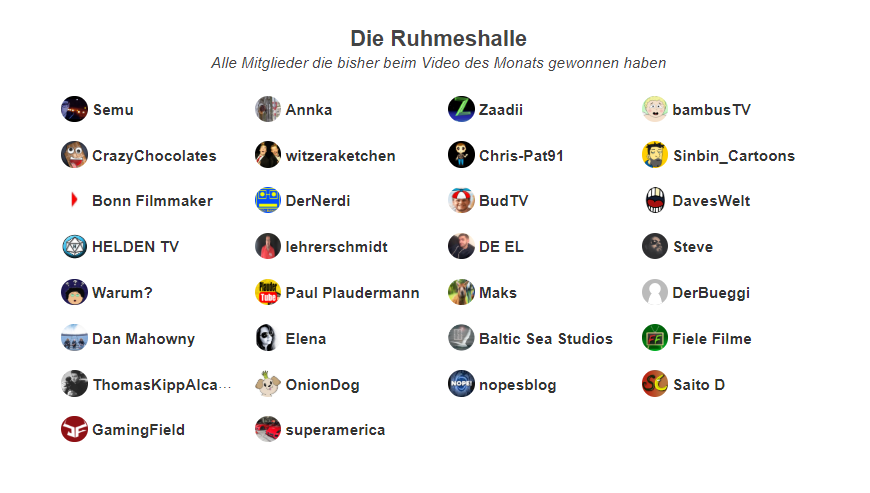 Unten auf der Video des Monats Seite findet ihr nun eine Auflistung aller bisherigen Gewinner (wer sich da vermisst, bitte schreien)