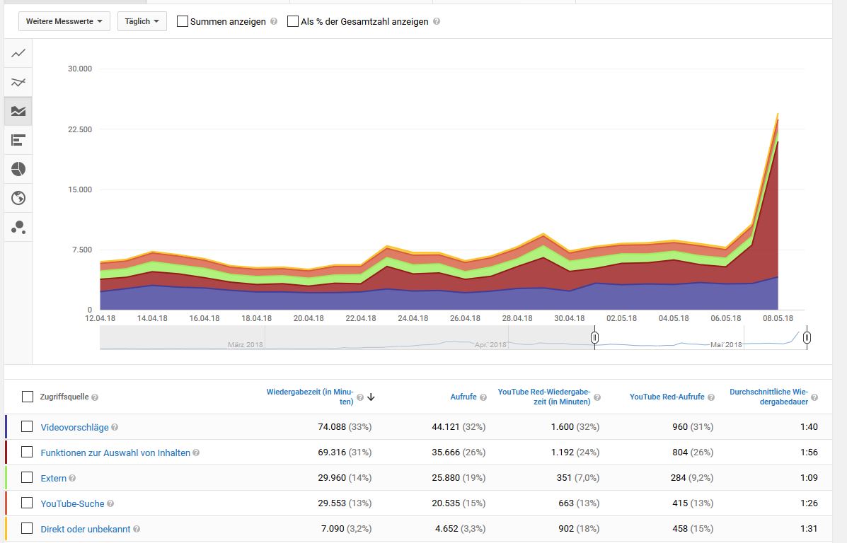der Anstieg ging auf ein Video was ich vor fünf Wochen hoch geladen habe