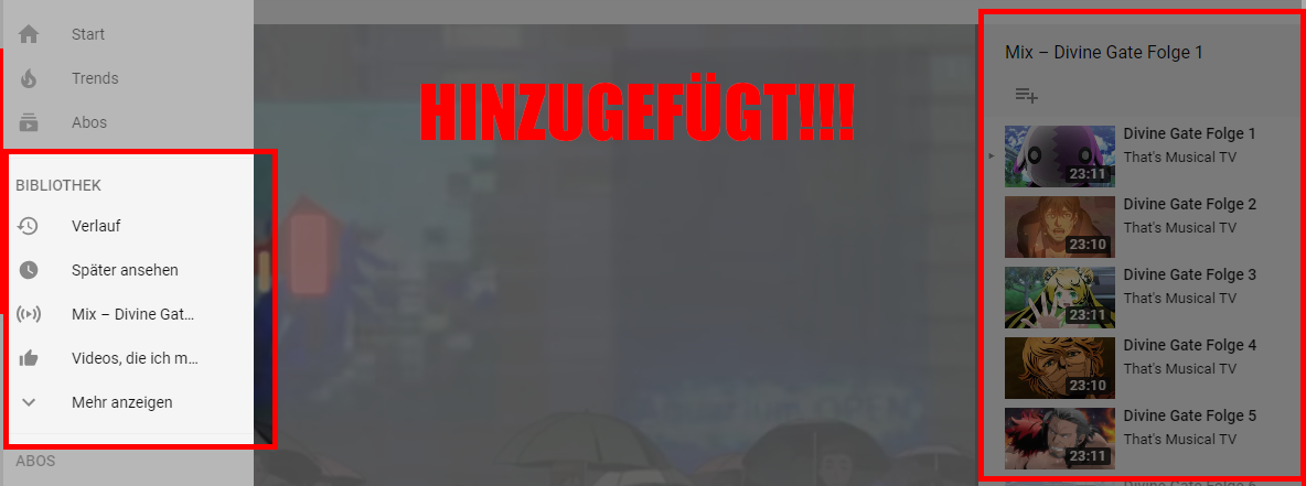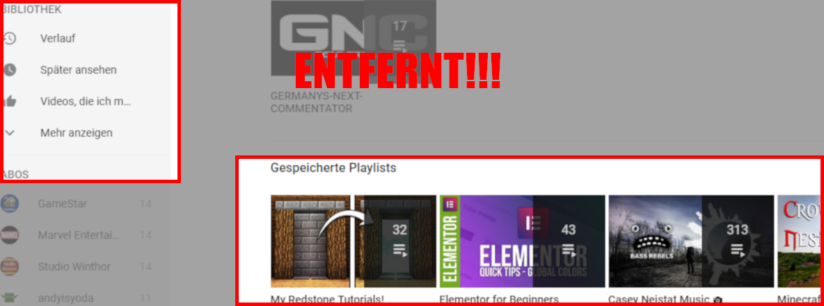 Im Netz wird immer nur die Möglichkeit zum Entfernen der "eigene Playlist" beschrieben.