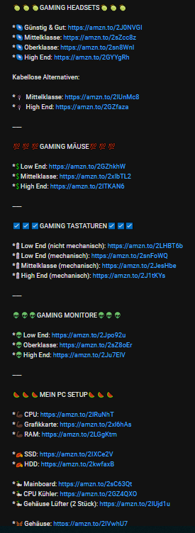 • Kommt auch hier natürlich auf den Content an- wie eh auch schon angesprochen, ist eine lange Liste Links bei einem Gamer vll weniger beliebt, als zB. bei einem Mal- und Bastelchannel wie Kritzelpixel- in der Videobeschreibung wünscht man sich ja jedes Produkt verlinkt, falls man es nachmachen möchte.