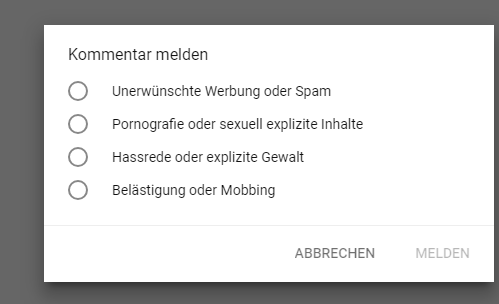 Kommentare kann man auch bei anderen Kanälen melden, wenn sie einem auffallen. Natürlich gilt dies auch für Kanalkommentare sowie eben auch dem Community Tab.