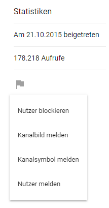 ... dort findest du dann unter dem Beitrittsdatum und den Aufrufen des Kanals, eine Flagge auf welche du dann drückst ...