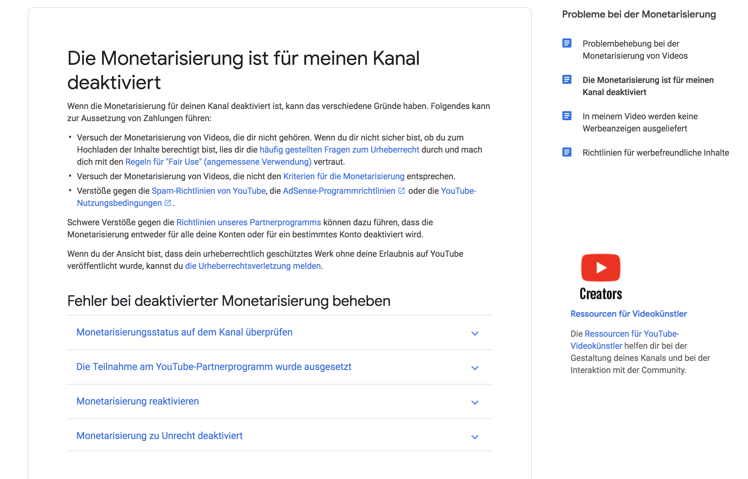 hallo, bei einem meiner Kanäle wurde die Monetarisierung ausgesetzt Weil er nicht die aktuellen geforderten Zahlen erreicht. Normalerweise sollte ich über den Bereiche Monitarisierung auf die Statistik kommen wo ich sehe wieviel Subscriber und Stunden Watchtime ich habe. Stattdessen komme ich nur auf einer Seite mithilfe Texten. Hat jemand eine Idee was ich tun muss um wieder dahin zu kommen die Übersicht zu haben und dann die vorgegebenen zahlen erreiche auf den Antrag neu senden kann?