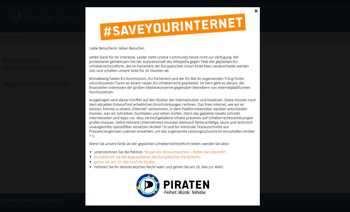 Falls ihr als Betreiber Interesse haben solltet gegen #Artikel13 oder #SaveYourInternet mit zu wirken.