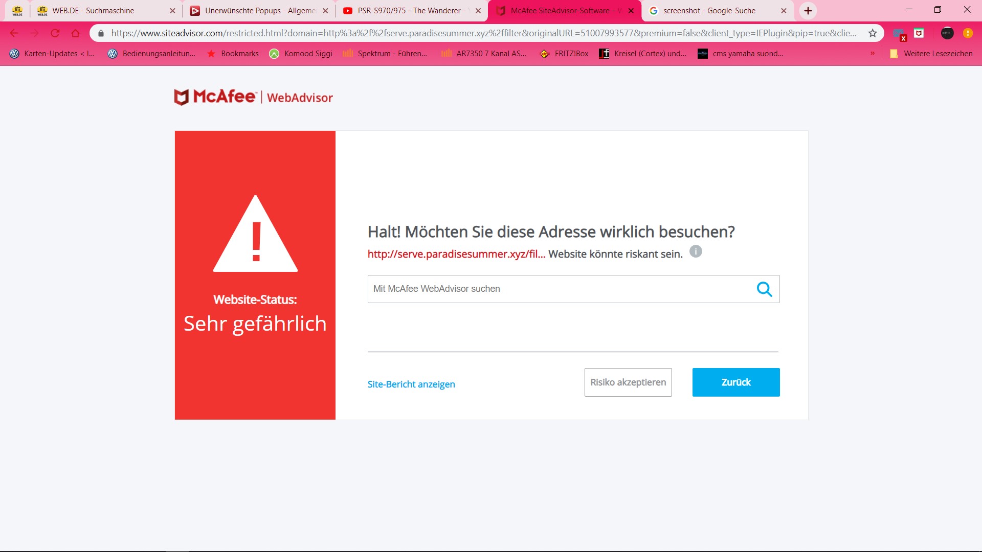 Ich habe bei mir das Problem, das ich in bestimmte freie Bereiche beliebiger YT Kanäle klicke und dann geht ein Browserfenster auf mit Link zu einer Seite (paradisesummer.xyz)