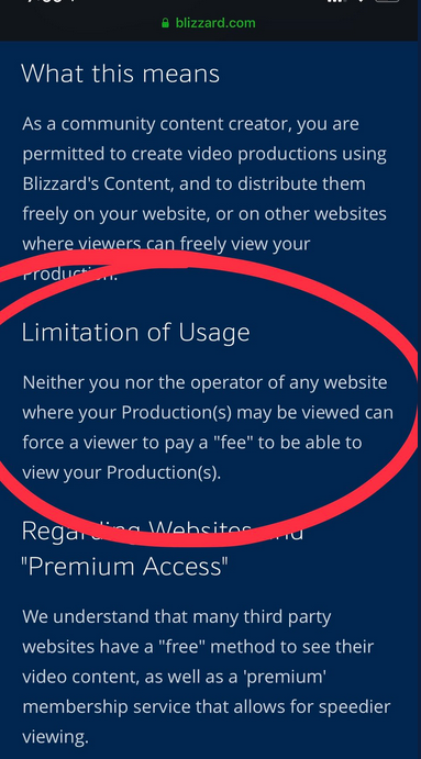 Terms of Service zu Video Content bei Blizzard