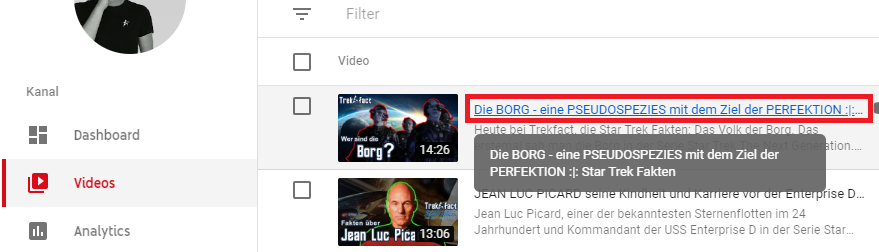 Schritt 1: Creator Studio Beta öffnen und auf den Reiter Videos gehen. Dann auf den Titel des Videos klicken.