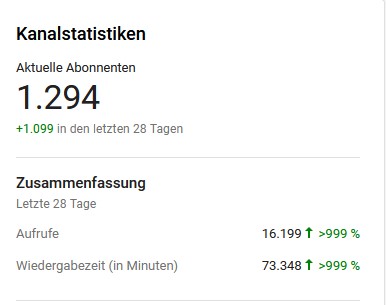 Jetzt mache ich seit ca. 3 Wochen YouTube mit Livesteams und habe in dieser Zeit die 1.000 Abos erreicht (1290 mittlerweile).