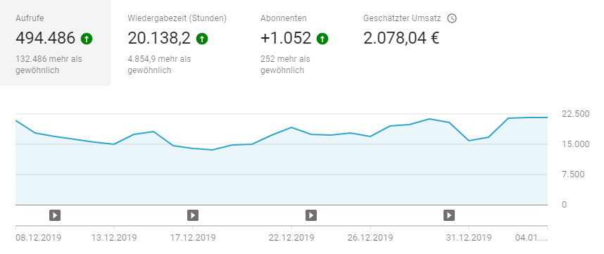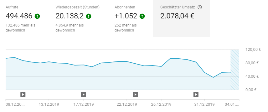 ich wollte mal fragen, ob bei euch die Adsense Einnahmen seit 01.01.2020 deutlich gesunken sind, wie es bei mir der Fall ist. Die Aufrufe sind bei mir recht gleich geblieben und diesen radikalen Fall nach unten hatte ich letztes Jahr bei meinen Einnahmen nicht. Mich würde es nur interessieren, ob es sich wieder einpendelt und ob Youtube hier etwas geändert hat, was ich nicht mitbekommen habe.