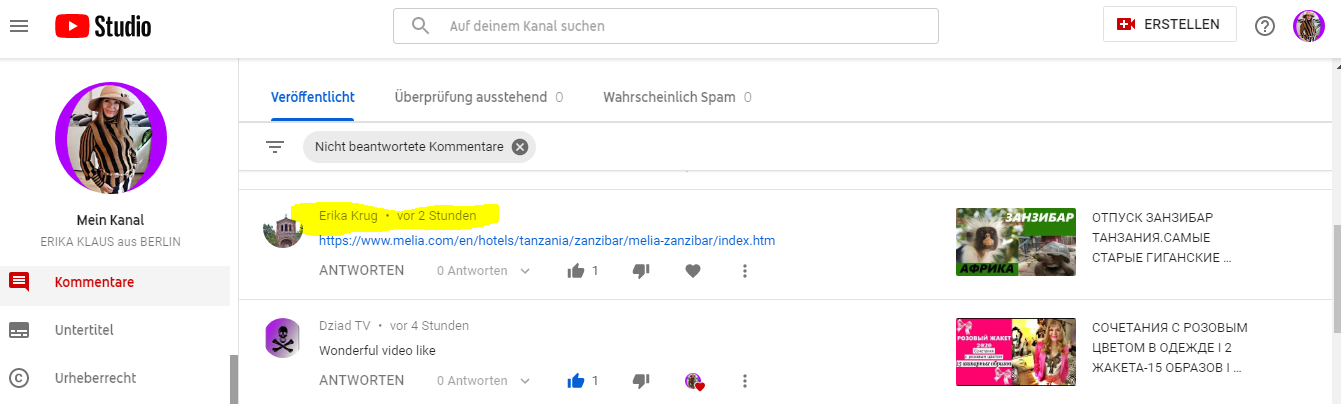 Wer kann einen Hinweis geben. Ich habe mittlerweile festgestellt, dass ich sehr unregelmäßig Benachrichtungen erhalte per E-Mail bei Kommentaren zu einen Videos.