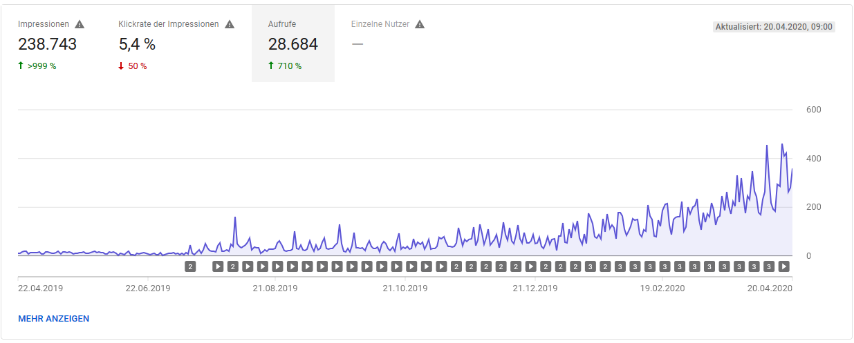 Was den Algorithmus betrifft, so weit bin ich in meiner Betrachtung nicht gegangen. Ein Weg könnte die Veröffentlichung an zwei aufeinander folgenden Tagen sein. Oder ich gehe tiefer in die Analyse und schaue, ob ich nicht einen weiteren Tag finde, der aus der Kurve hervor sticht.