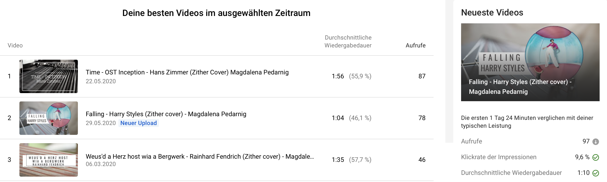 Welche stimmt denn jetzt? Die im Dashboard, die bei "Videos" oder doch die unter dem Video selbst?