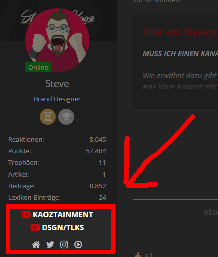 Wenn ihr geile Beiträge seht, Beiträge wo es hilft den Kanal zusehen, Beiträge die euch aufregen, Beiträge die an jeglichen Verstand zweifeln lassen ... dann könnt ihr, einfach unter dem Avatar Links unten drunter auf den Kanalnamen oder die Social Media Icons klicken und landet auf den passenden Social Media Kanälen.