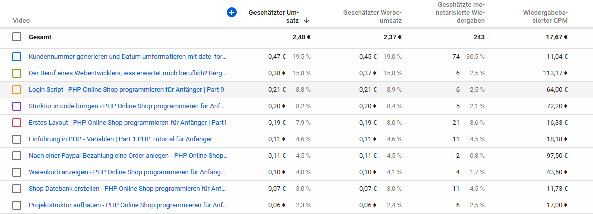 ich habe nun zum ersten Mal meine Geschätze Einnahmen nach einem Tag gesehen und bei mir steht ein CPM von 17,67€ ist das einfach nur ein Bug von Youtube? Oder liegt es einfach nur daran dass ich nicht so viele Klicks habe und die Zahl geht dann runter mit der Anzahl an klickst?
