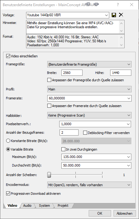 • Ich würde immer empfehlen nicht auf Bitrate sondern auf Qualität zu rendern und zu komprimieren. Das erhöht die Renderzeit, erhält die Qualität und verringert die Bitrate. Niemand will eine hohe Bitrate, je niedriger die Bitrate, umso besser, nur müssen halt alle Daten noch reinpassen.