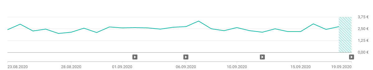 Dann berechnen sich die RPM aus allen Einnahmen gerechnet auf alle Views. Wenn Du also z. B. in der Zeit einen Livestream gemacht hast, und jemand hat Dir einen Superchat geschickt oder jemand schaut eine Werbung komplett an und klickt am Ende auch noch drauf (Klick ist mehr wert als View), schnellt die RPM kurzzeitig nach oben. Hast Du auf der anderen Seite an einem Tag besonders viele Views, wo Leute mit Adblocker geschaut haben, oder über ein eingebettetes Video, bei dem eventuell keine Werbung möglich war, sinkt der Wert dramatisch.