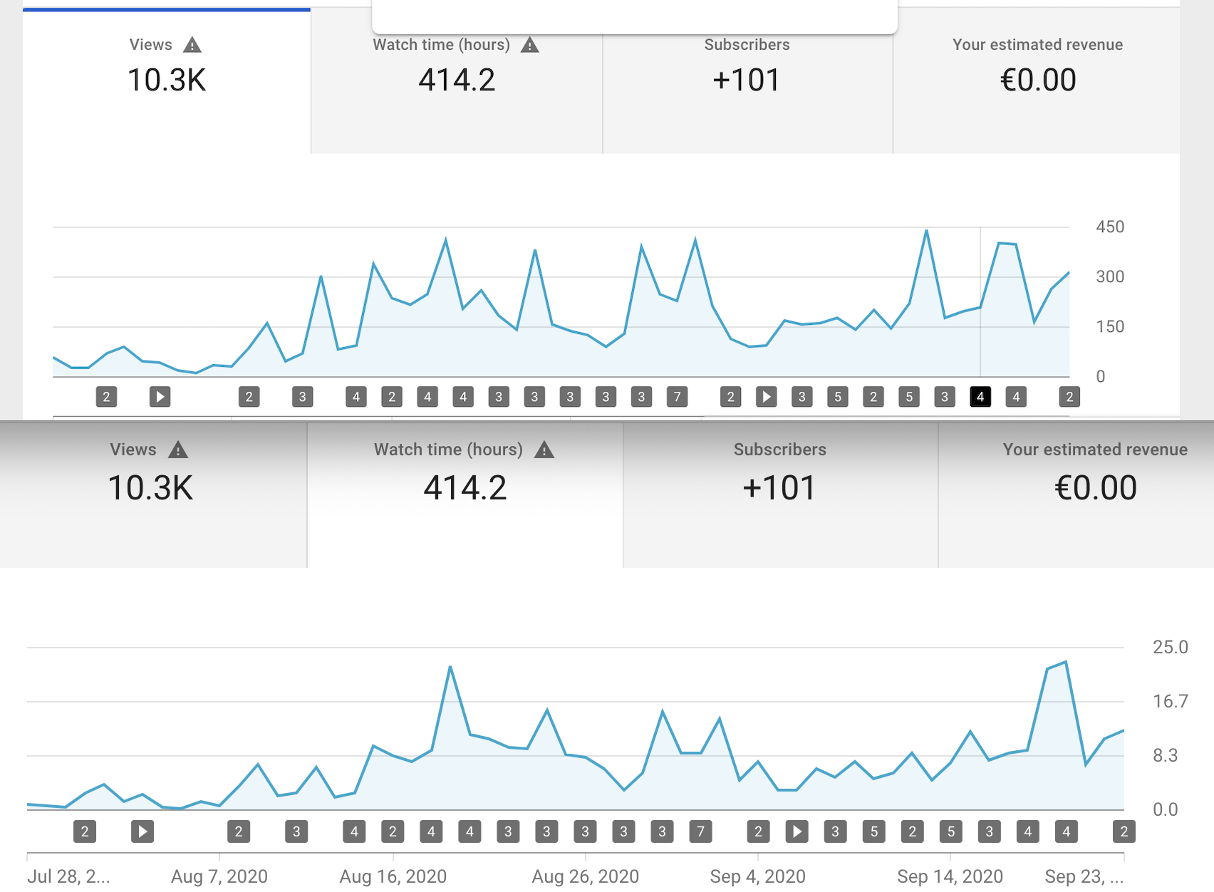 Bis Jahresende hoffe ich täglich die 300 Views und 15 Stunden Viewtime zu haben, dann ist das ein solider Aufwärtstrend.