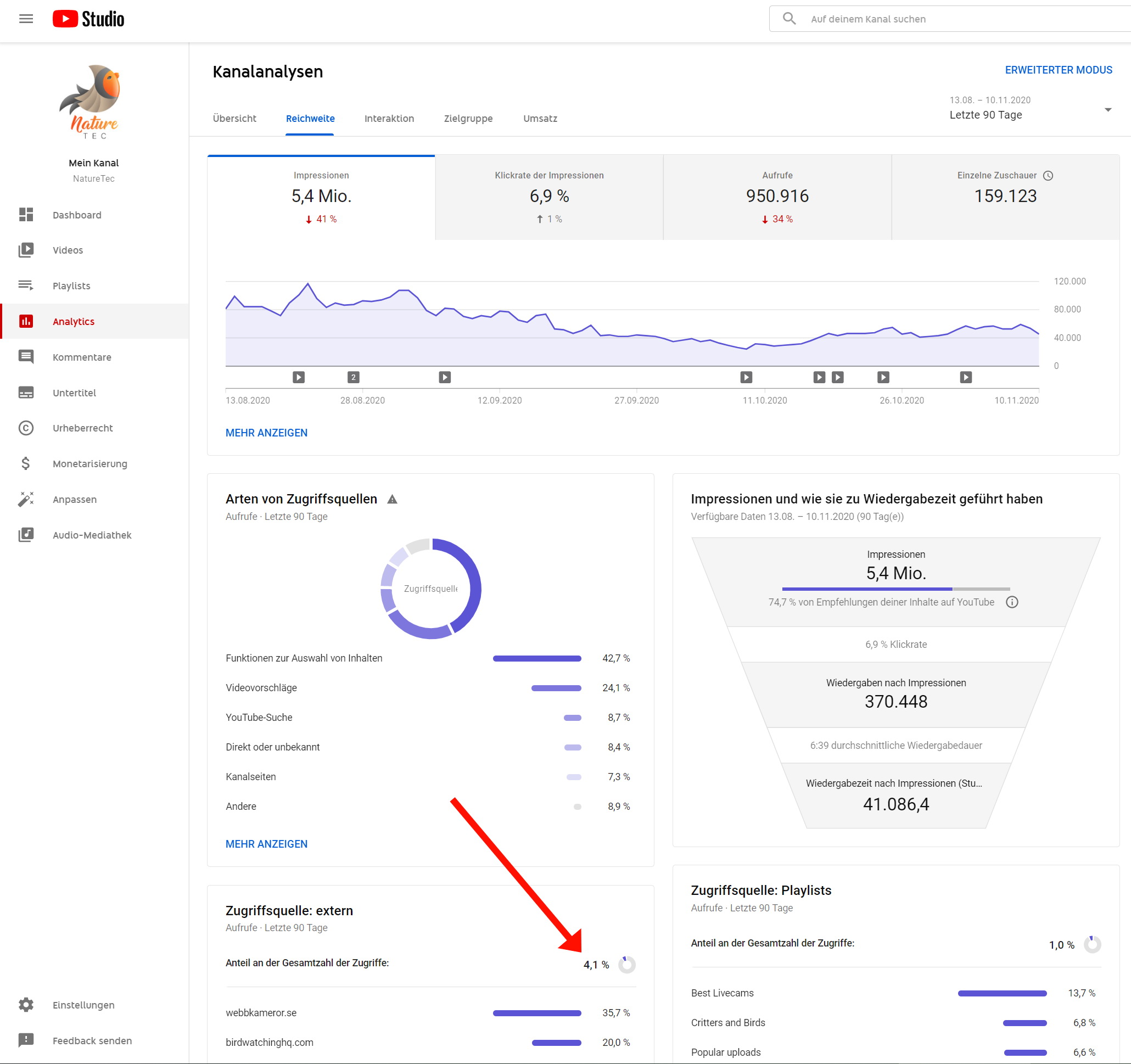 Dann fiel mir im Analytics-Bereich eine Meldung von YouTube aus: