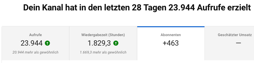 Das 1. Quartal ist vorbei — Mein wichtigstes Jahresziel ist es meine Videoproduktion zu streamlinen/effizienter zu gestalten, da ich derzeit viel zeit verwendet.. Ich hoffe zumindest 1 Video pro Woche durchzuhalten und evtl auf 1 & 2 alternierend hochzugehen.. Die Anstiege an Abos, Watchtime etc. folgen hoffentlich...
