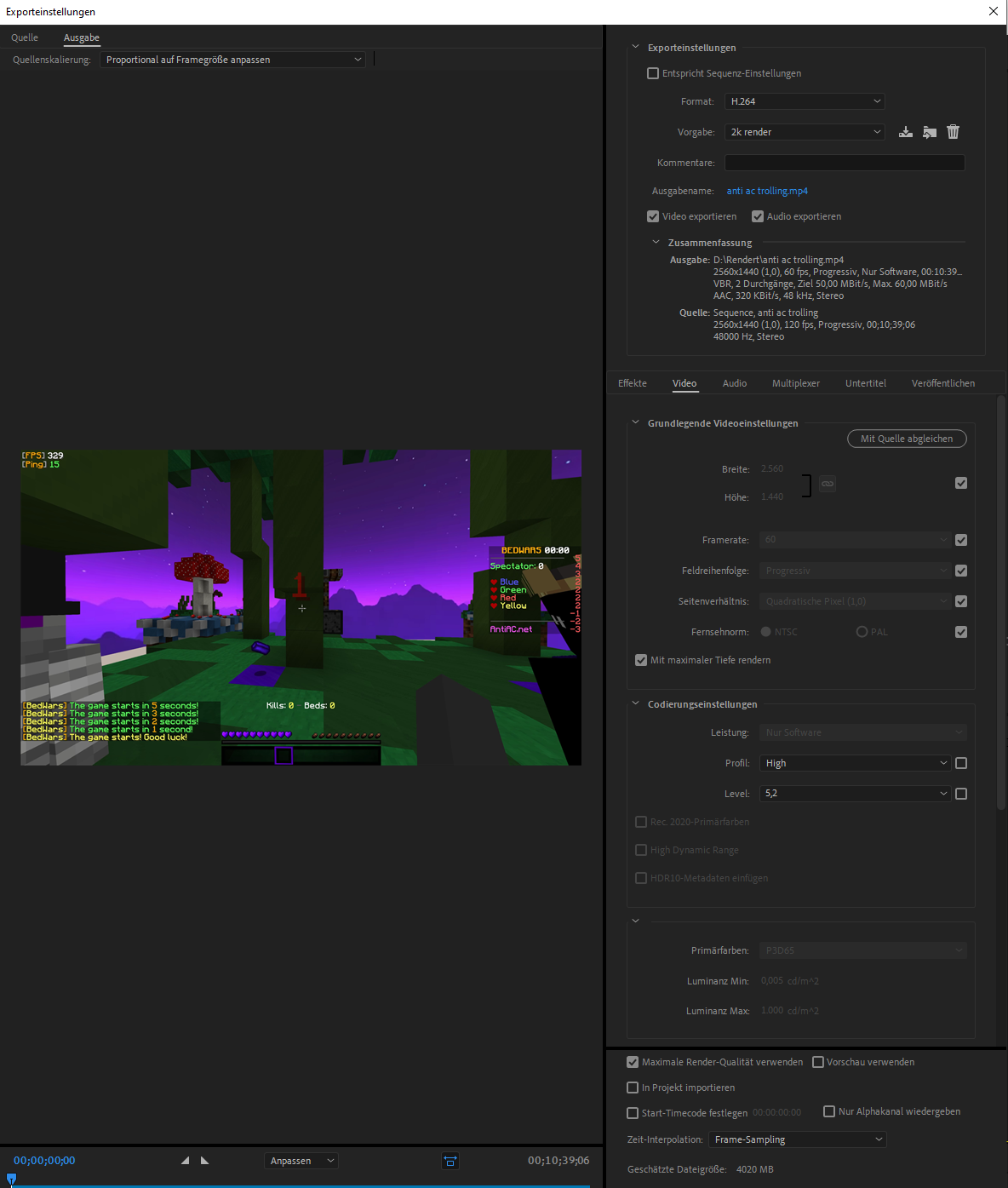 ich möchte demnächst wieder ein Comeback auf meinem Kanal starten. Habe dementsprechend einige Videos vorproduziert und Test auf YouTube hochgeladen und die Qualität sieht immer auch 1080p60 extrem schlecht aus. In 2k sieht es aber wieder gut aus, aber die Verarbeitung in HD hat ca. 3 Stunden gebraucht. Ich schneide mit Premiere Pro und habe Rendereinstellung von anderen übernommen. Ich verlinke mal alle Dateien unten, die eventuell helfen könnten, das Problem zu lösen.