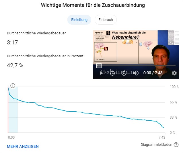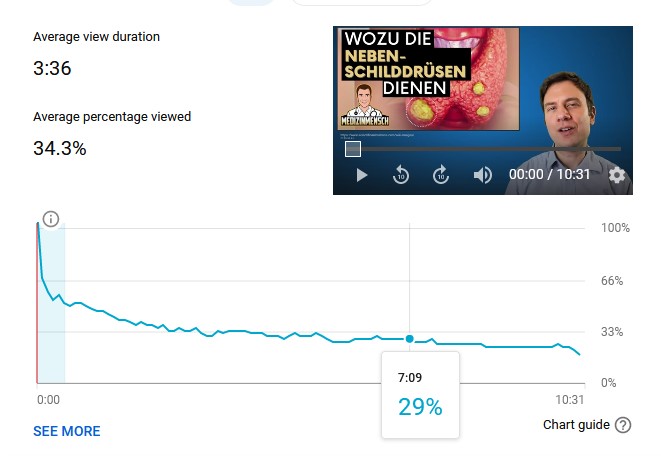 Ich mache seit ca 1/2 Jahr Videos zu medizinischen Themen. Eines meiner ersten erfolgreicheren Videos war zum Thema der Funktion der Nebenniere, es hat mehr als 1000 views bekommen, obwohl es alles andere als technisch professionell war. Ich habe inzwischen mich (finde ich) technisch deutlich gebessert. Ein ganz aehnliches Video zu einem sehr aehnlichen Thema Nebenschilddruese, ist jetzt aber ueberhaupt nicht erfolgreich ?!?