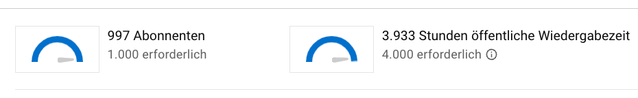 Diese Frage stellt sich wohl jeder der halbwegs ernsthaft YouTube betreibt. Deswegen möchte hier mal ein Weg aufzeigen. Fairerweise muss ich dazu sagen, das mein Kanal schon viele Jahre existiert und auch früher schon monetisiert war, nämlich zu dem Zeitpunkt wo jeder Kanal monetisiert werden konnte und im Zuge der Umstellung auf die 1000/4000h wieder demonetisiert wurde.