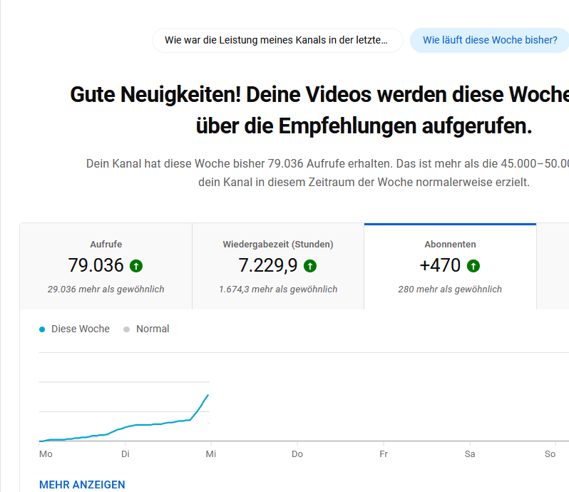 - Bedenkt aber ebenfalls, dass diese Werte (ausnahme Views) evtl. persönliche emotionale Werte für euch haben aber faktisch kaum Relevanz für den Erfolg eurer Videos bzw. die Streuung der Inhalte von den KIs haben.