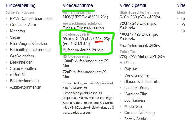 Und langfristig will ich mir auch eine Drohne kaufen (Swellpro 3+ weil Wasserfest) und die wiederum kann nur 4k/30fps
