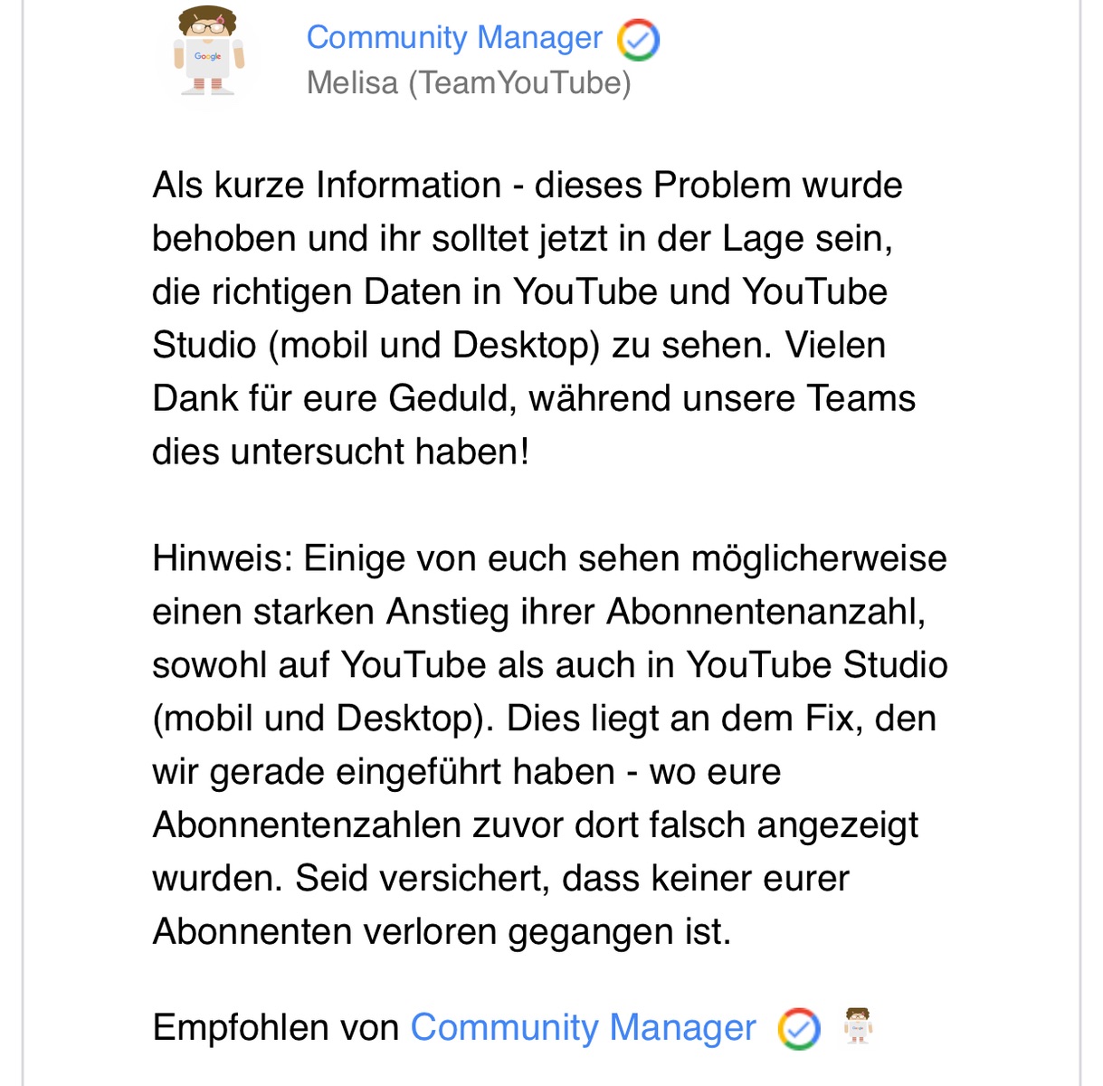 Diskussion zum Artikel YouTubes Problem mit Likes & Sub Diskrepanzen in der Wiedergabeseite & den Analytics: