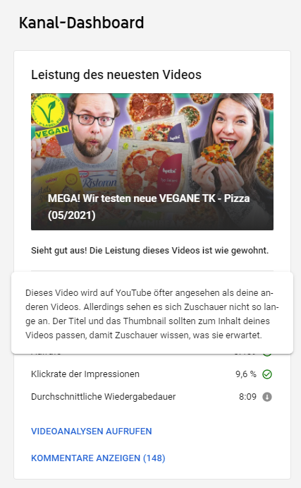 PS: Damit es keine Spekulationen über den Kontext des Screenshots gibt: YouTube Studio am Desktop-PC, zu dem Zeitpunkt hat das Video ca 3500 views, 360 Daumen hoch, 0 Daumen runter. Bei der Meldung oben ging es wirklich nur um die durchschnittliche Watchtime.